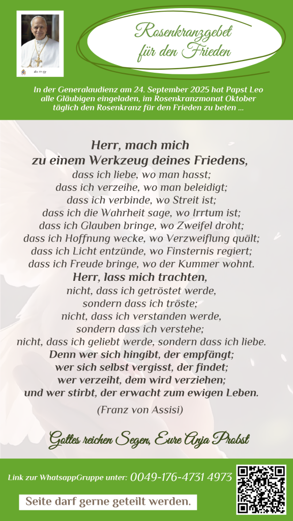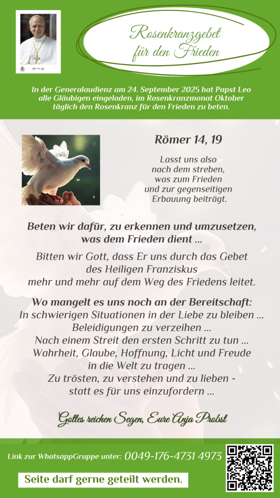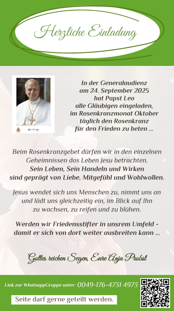 Einladung zum Rosenkranzgebet im Oktober für den Frieden